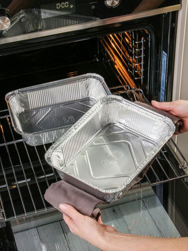 Одноразовые формы не требуют мытья, их легко утилизировать после использования, а крышка обеспечивает чистоту и удобную транспортировку готовых блюд.