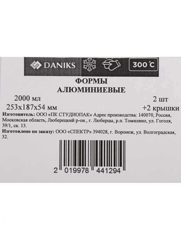 Форма для запекания алюминий, 2 шт, 25.3х18.7х5.4 см, 2 л, прямоугольная, с крышкой, Daniks, SP(RF)88L