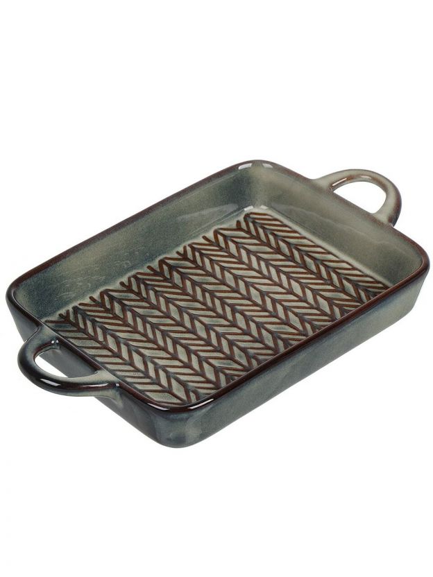 Размер — 18,5х32х4 см, объём — 1,8 литра. Прямоугольная форма удобна для порционных и семейных блюд.