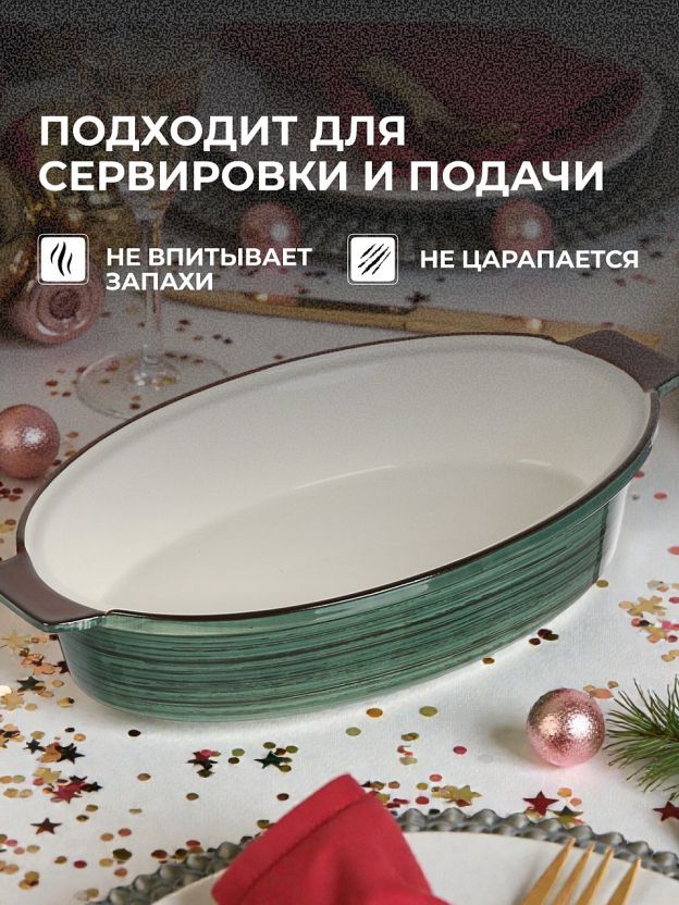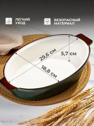 Форма для запекания керамика, 18.8х29.6х5.7 см, 1.2 л, овальная, Малахит, Y4-9044