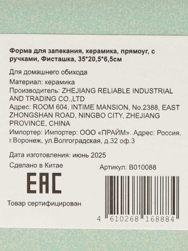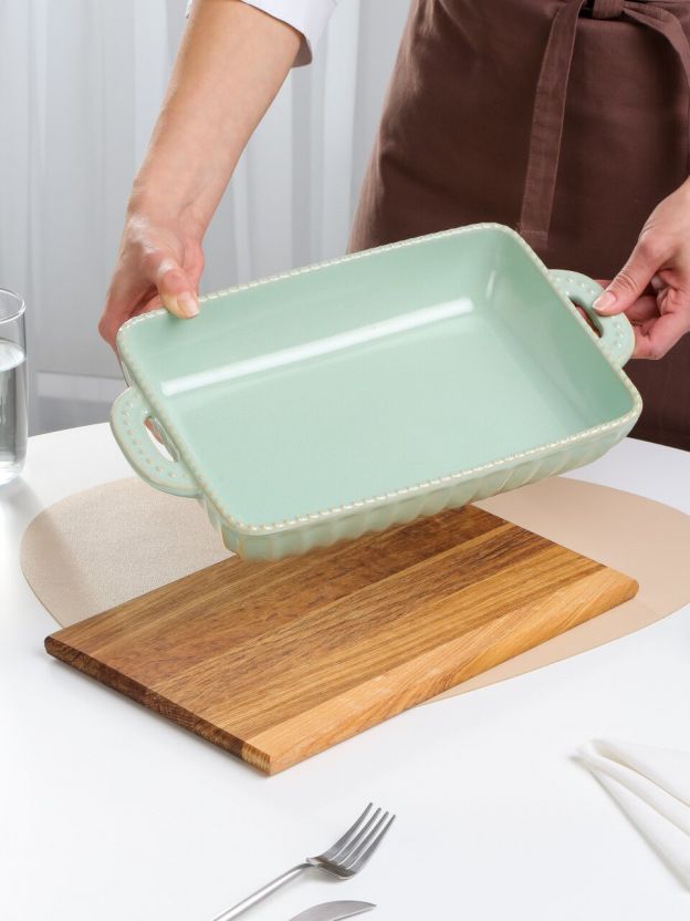 Форма для запекания керамическая 35х20,5 см — это лучший выбор для тех, кто ищет надежную посуду для духовки. Благодаря натуральной керамике блюда пропекаются равномерно, не пригорают и сохраняют сочность. Покрытие не впитывает запахи, а стильный цвет «Фисташка» гармонирует с любым интерьером. Если вы ищете, какую форму для запекания выбрать для лазаньи, мяса или овощей, обратите внимание на этот размер: он оптимален для семьи из 3-5 человек и легко помещается в стандартную духовку.