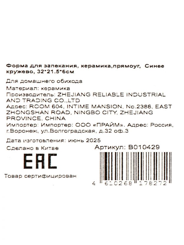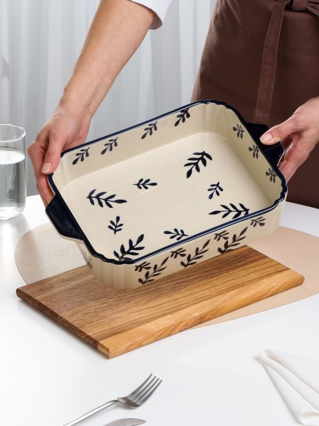 Форма для запекания из керамики «Синее кружево» 32x21,5x6 см — это выбор тех, кто ценит практичность и эстетику на кухне. Благодаря натуральной керамике блюдо прогревается равномерно, что особенно важно для запеканок, мяса и десертов. В отличие от стеклянных и металлических аналогов, керамическая форма долго сохраняет тепло, не выделяет посторонних запахов и устойчива к сколам.