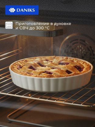 Да, форма Daniks Волна из керамики предназначена для использования как в духовке, так и в СВЧ. Максимальный объем — 1.65 л, размеры 26х26х5 см.
