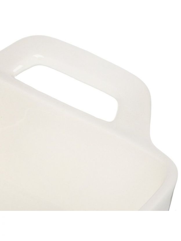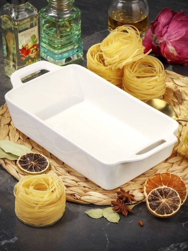 По сравнению с металлическими или стеклянными аналогами, керамика более устойчива к перепадам температур и не вступает в реакцию с пищей. Если вы ищете, какую форму для запекания выбрать для дачи или подарка, обратите внимание на эту модель: она не требует сложного ухода, легко моется, а белый цвет впишется в любой интерьер. Отсутствие крышки и антипригарного слоя компенсируется естественными антипригарными свойствами керамики и возможностью использовать бумагу для выпечки.