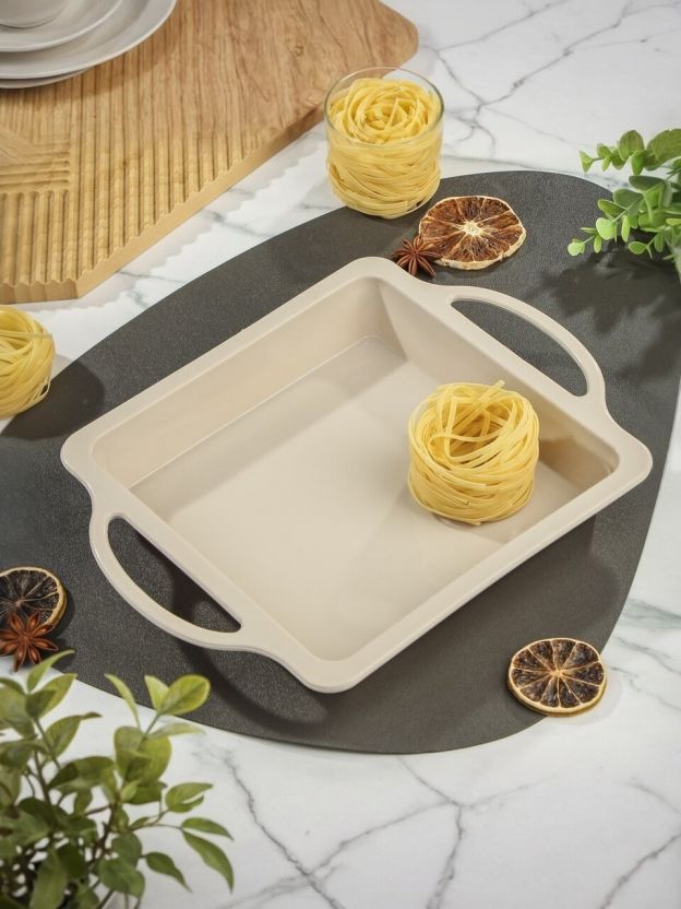 Форма для запекания силикон, 23.5 см, квадратная, с металлическим каркасом, бежевая, Daniks, Pollen, B030098