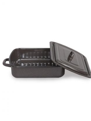 Форма для запекания сталь, 20х27 см, 3 л, прямоугольная, с крышкой, темно-коричневая, Рябчик, 43304-122