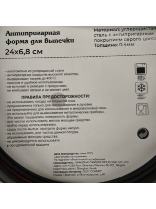 Круглая форма диаметром 24 см, высотой 6.8 см — оптимальный выбор для среднего торта или пирога, подходит для стандартных духовок.