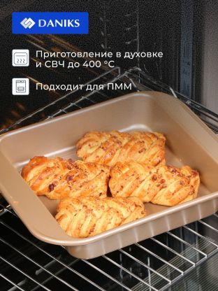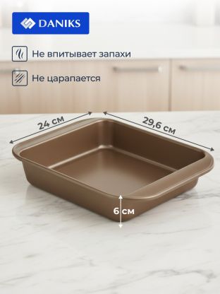 Форма для запекания Daniks 24х29.6х5 см — антипригарная сталь, универсальный квадрат для идеальной выпечки и запекания дома и на даче.