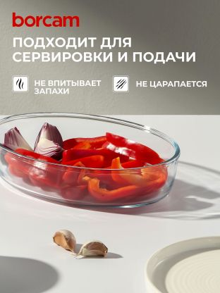 Форма для запекания стекло, 1.5 л, овальная, Borcam, 59084