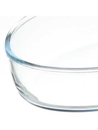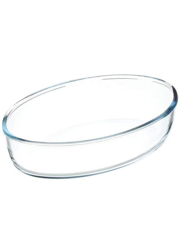 Объем — 1.5 литра, овальная форма, выполнена из жаропрочного стекла, не имеет крышки и рифленого дна, не разъемная, подходит для духовки и СВЧ, можно мыть в посудомоечной машине.