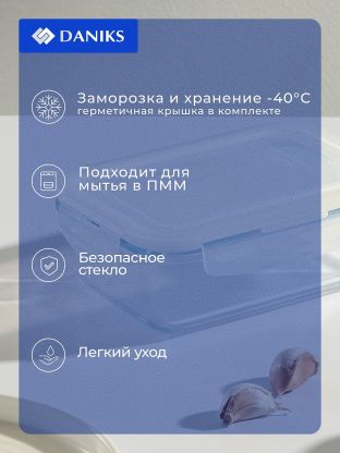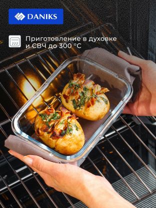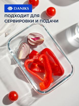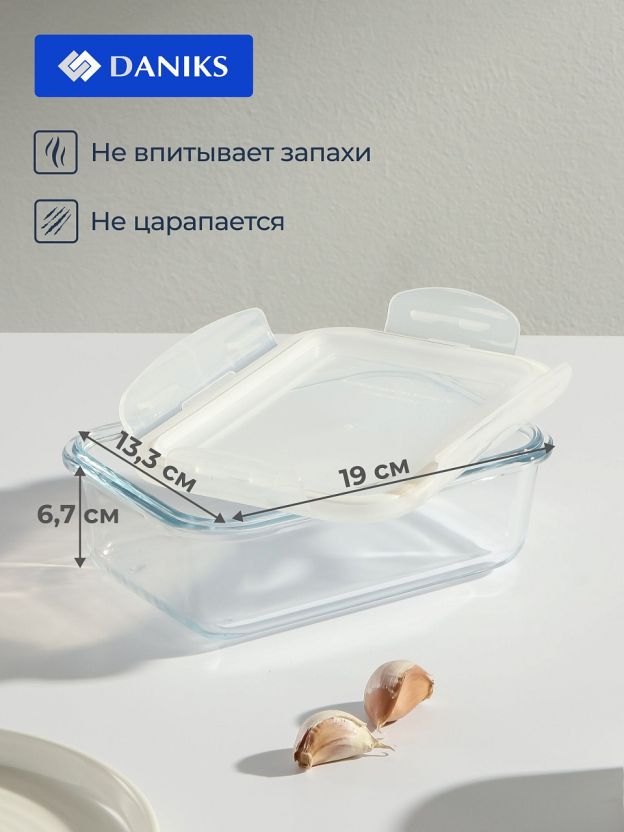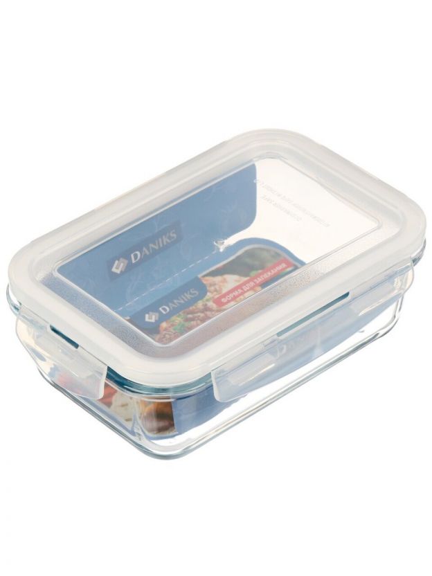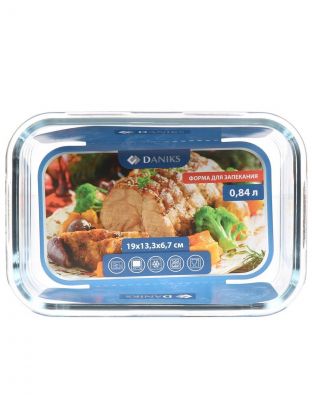 Форма для запекания стекло, 13.3х19х6.7 см, 0.84 л, прямоугольная, с крышкой, Daniks