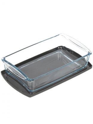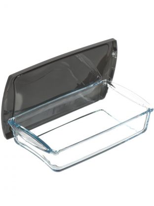 Форма для запекания стекло, 15х26х5.5 см, 1.32 л, прямоугольная, с крышкой, Borcam, 59864GREY