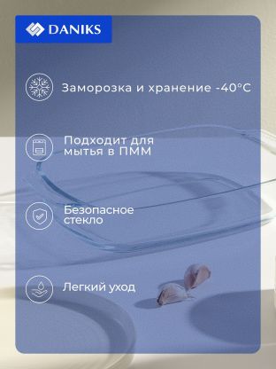 В отличие от металлических форм, стеклянная посуда Daniks не ржавеет и легко моется даже в посудомоечной машине. Отсутствие антипригарного покрытия исключает появление царапин и сколов, а бесцветный материал позволяет визуально контролировать степень готовности блюда. Часто спрашивают: «Подходит ли форма для дачи?» — да, она универсальна, проста в уходе и не требует специальных условий хранения. Если вы ищете, что лучше для запекания в духовке, обратите внимание на жаропрочное стекло: оно дольше сохраняет тепло и подходит для подачи на стол.