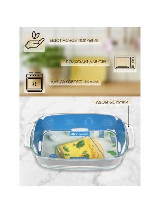 Жаропрочная форма для запекания Daniks 2 л — универсальное стеклянное решение для вкусных блюд дома и на даче. Прямоугольная, подходит для СВЧ и духовки.