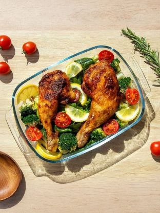 • Оптимальный размер 19.6х30.2х5.8 см — удобно готовить курицу, рыбу, пироги, объём 2 л для семьи