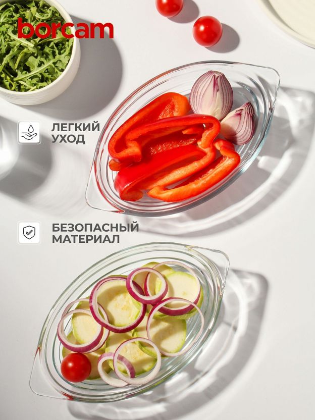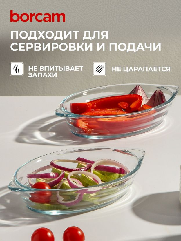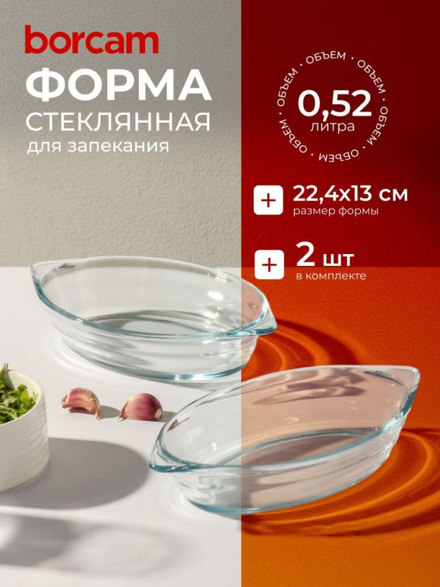 Овальные формы для запекания из стекла Borcam 0,52 л (2 шт): готовьте мясо, рыбу и овощи без пригорания и лишних хлопот — идеальный выбор для дома и дачи.