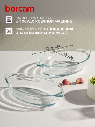 Форма для запекания стекло, 2 шт, 13х22.4 см, 0.52 л, овальная, Borcam, 590007