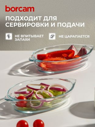 Форма для запекания Borcam изготовлена из прочного закалённого стекла, которое выдерживает высокие температуры и не впитывает запахи. Благодаря овальной форме блюда равномерно пропекаются, а прозрачность материала позволяет контролировать степень готовности без открывания духовки. Часто спрашивают: «Подходит ли для СВЧ?» — да, эти формы безопасны для микроволновки и посудомоечной машины, что экономит ваше время и силы.