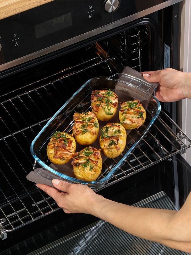 - Удобный размер 20.2х34.5х5.2 см и объём 2 литра — идеально для курицы, пирога или рыбы на семью