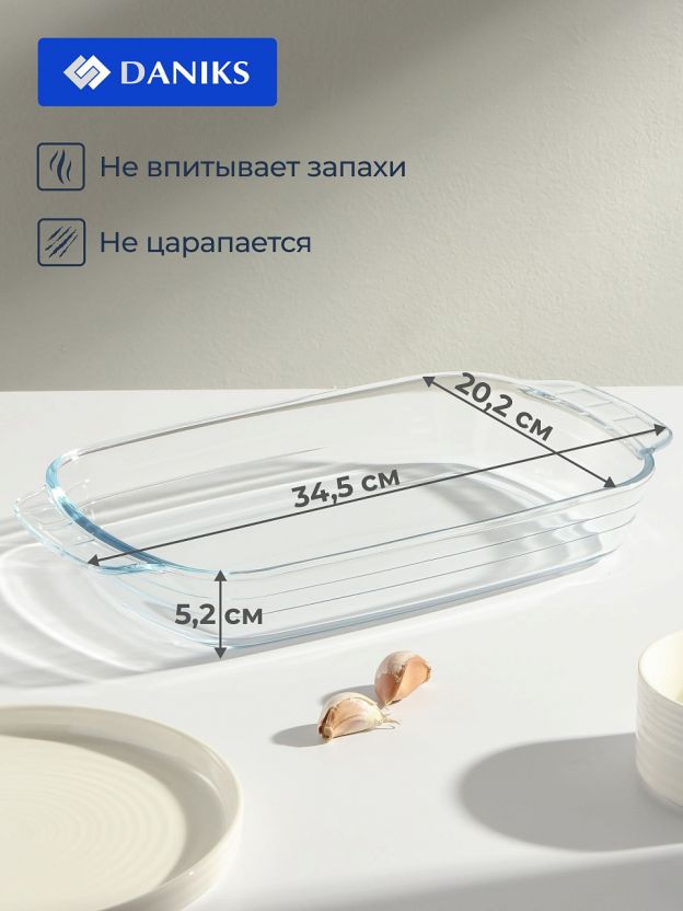 Форма для запекания стекло, 20.2х34.5х5.2 см, 2 л, прямоугольная, Daniks