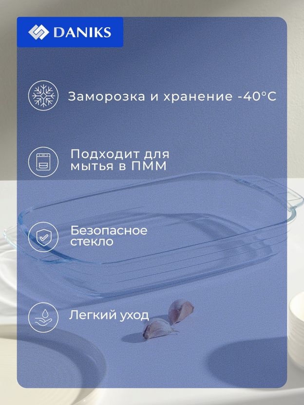 Форма для запекания Daniks из бесцветного стекла — это практичное решение для тех, кто ищет безопасную и долговечную посуду. Благодаря жаропрочному стеклу форма выдерживает высокие температуры, подходит для использования в духовке и микроволновой печи, а также легко моется в посудомоечной машине. Такой материал не выделяет вредных веществ при нагревании, что важно для здоровья семьи.