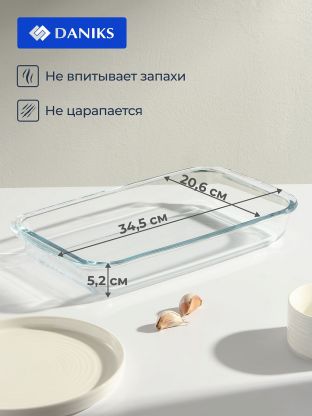 Форма для запекания стекло, 20.6х34.5х5.2 см, 2.2 л, прямоугольная, Daniks