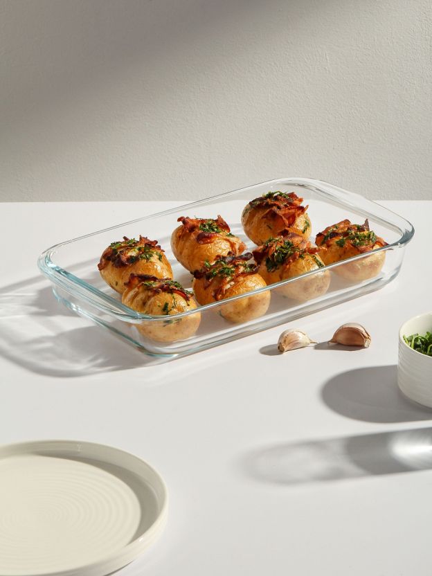 Универсальная стеклянная форма для запекания 2,2 л Горница: идеальный размер, ручки для удобства, подходит для духовки и микроволновки. Почему выбирают: Жаропрочное стекло: сохраняет вкус и полезные свойства блюд, не впитывает запахи Оптимальные размеры 20.7х34.5х5 см — удобно для семейных обедов и ужинов, объем 2,2 л Универсальность: подходит для дома, дачи, подарка ценителям домашней кухни Стеклянная форма для запекания Горница объемом 2,2 литра — это выбор тех, кто ищет безопасную и долговечную посуду для приготовления мяса, курицы, рыбы, овощей или пирогов. Прямоугольная форма с удобными ручками облегчает перенос готовых блюд, а прозрачное жаропрочное стекло позволяет контролировать процесс запекания. Форма не имеет антипригарного покрытия, что делает ее безопасной для здоровья, и легко моется в посудомоечной машине. Если вы ищете, какую форму для запекания выбрать для духовки или микроволновки, этот вариант подойдет для большинства стандартных рецептов. В отличие от металлических и керамических аналогов, стекло не окисляется и не влияет на вкус пищи. Можно использовать в СВЧ, а отсутствие рифленого дна обеспечивает равномерное пропекание. Часто спрашивают, подходит ли эта форма для больших порций — объем 2,2 л оптимален для семьи из 3-5 человек. Выбирайте форму Горница, чтобы купить недорого жаропрочную посуду для дачи или дома с гарантией безопасности и удобства. Закажите сейчас — и готовьте любимые блюда без хлопот! Частые вопросы: Можно ли использовать форму для запекания Горница в микроволновке и духовке? Да, форма из жаропрочного стекла подходит для использования в СВЧ и стандартных духовках. Размер 20.7х34.5х5 см позволяет ставить ее в большинство моделей. Чем выгодна стеклянная форма для запекания без антипригарного покрытия? Стекло не впитывает запахи, не выделяет вредных веществ, легко отмывается и сохраняет натуральный вкус продуктов. Подходит для приготовления мясных, овощных и сладких блюд. Какой объем и размеры у формы Горница? Объем — 2,2 литра, размеры: ширина 20,7 см, длина 34,5 см, высота 5 см. Прямоугольная форма с ручками для удобства переноски.
