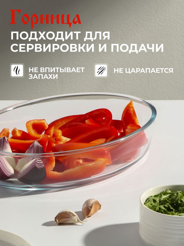 Овальная жаропрочная форма для запекания из стекла 2,4 л Горница — универсальный выбор для духовки и СВЧ. Надёжное решение для вкусных домашних блюд без лишних хлопот.