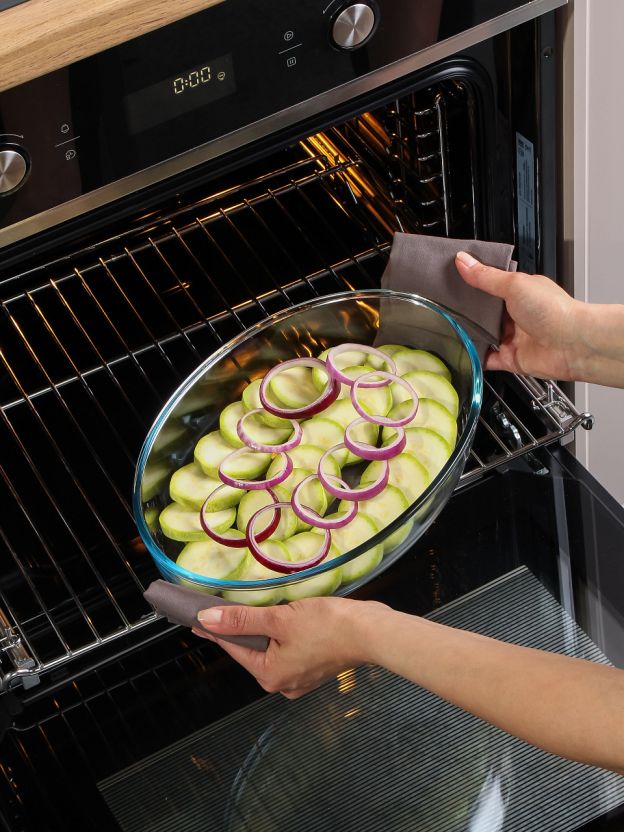 Форма для запекания Borcam из термостойкого стекла — это идеальный вариант для тех, кто ищет, какую посуду выбрать для духовки или микроволновки. Благодаря прозрачному корпусу вы легко контролируете степень готовности блюда, а материал не впитывает запахи и не реагирует с продуктами. Если вы спрашиваете, чем отличается стеклянная форма от металлической, — стекло равномерно распределяет тепло, не ржавеет и не требует специального ухода.