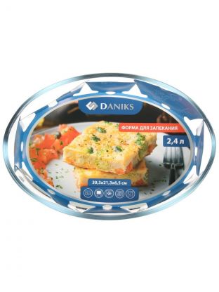 Форма для запекания стекло, 21.4х29.8х6.3 см, 2.4 л, овальная, Daniks, DNX-24R