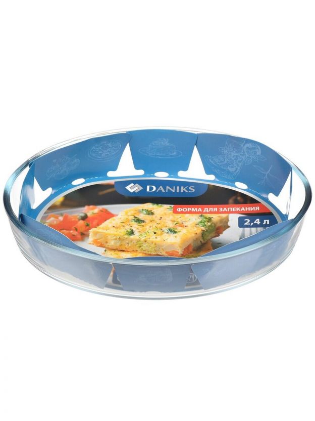 Жаропрочная стеклянная форма Daniks 2.4 л: удобно запекать курицу, рыбу, пироги. Безопасно для духовки и СВЧ, легко мыть в посудомойке.