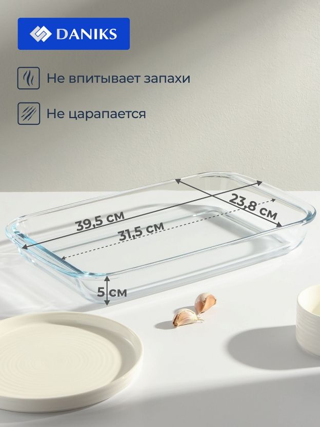 Форма для запекания стекло, 23.8х39.5х5 см, 3 л, прямоугольная, Daniks