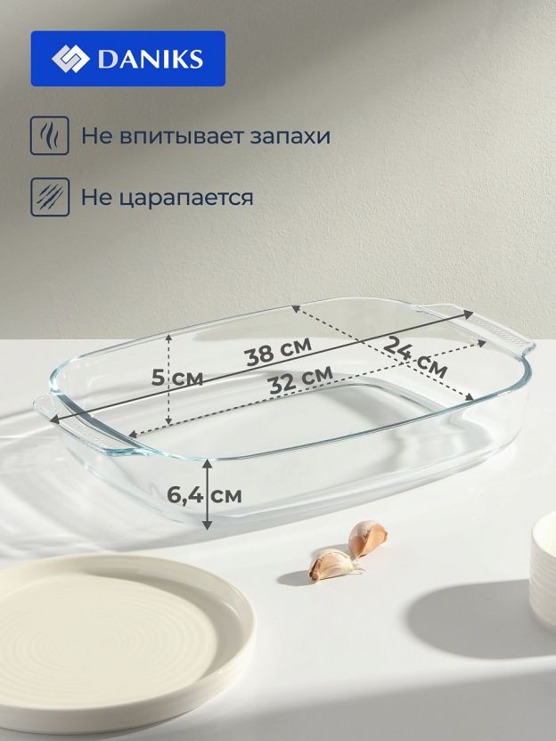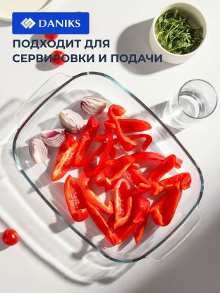 Форма для запекания стекло, 25.4х38х6.4 см, 3.7 л, прямоугольная, Daniks