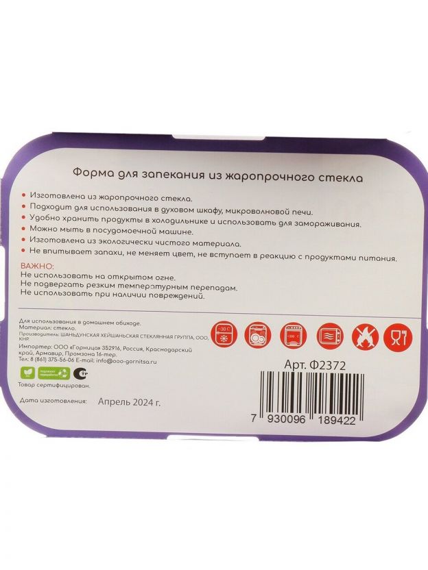 Форма для запекания Горница Ф2372 — это универсальный выбор для тех, кто ищет, какую форму для духовки купить недорого для дачи или дома. Прямоугольная конструкция и вместимость 3,7 л позволяют запекать курицу, рыбу, мясо или пироги на всю семью. Благодаря жаропрочному стеклу блюдо равномерно пропекается, а ручки обеспечивают безопасное и удобное извлечение.