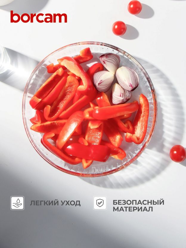 В отличие от металлических или керамических аналогов, стекло Borcam не вступает в реакцию с продуктами, не царапается, а прозрачные стенки позволяют контролировать процесс приготовления. Часто спрашивают: «Как использовать форму для пирога, курицы или рыбы?» — просто выкладывайте ингредиенты, ставьте в духовку или микроволновку, после чего легко мойте в посудомойке.