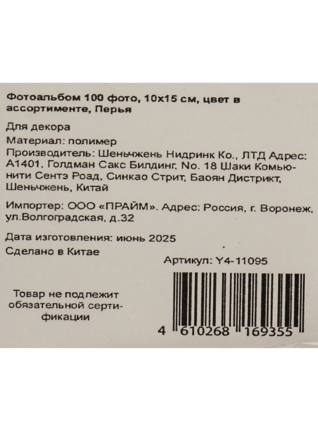 Фотоальбом 100 фото, фото 10х15 см, 25 листов, полимер, в ассортименте, Перья, Y4-11095