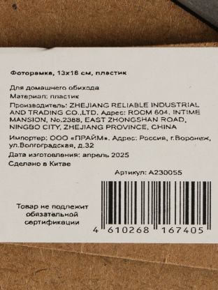 Размер — 13х18 см, материал — легкий и прочный пластик, универсальный стиль, подходит для вертикального и горизонтального размещения.