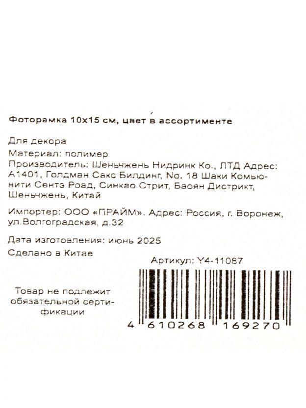 Подходит ли для фото на документы? Да, формат 10х15 см универсален для большинства стандартных снимков. Рамка поставляется без выбора цвета, что удобно при массовых закупках или оформлении фотостен.