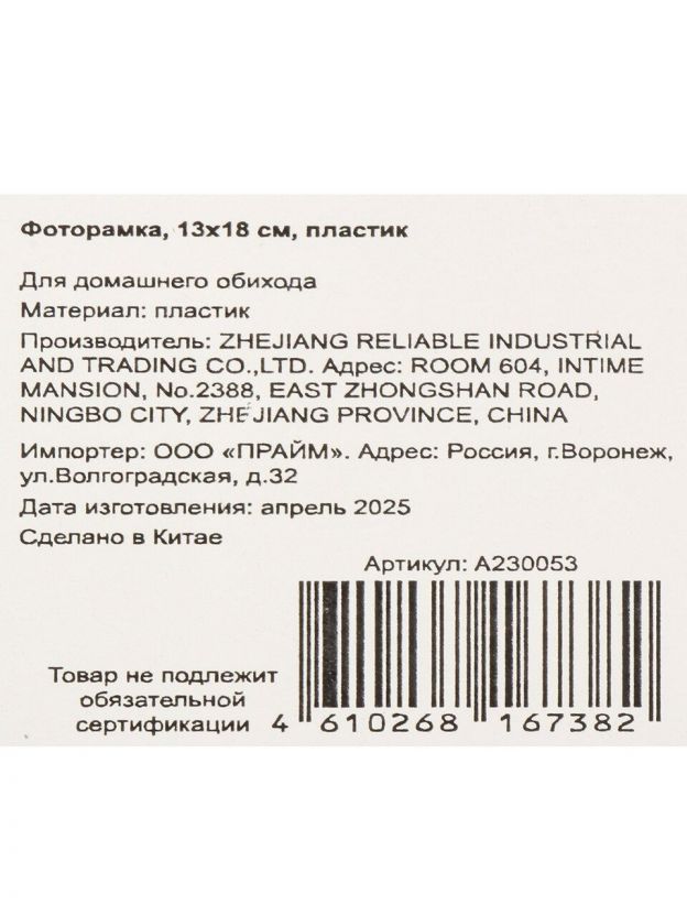 Фоторамка фото 13х18 см, пластик, A230053