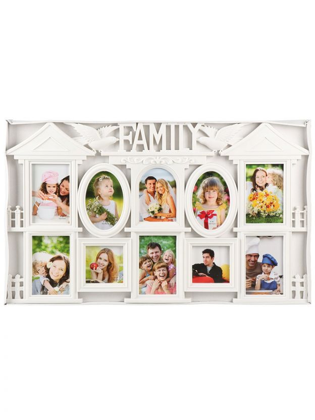 Фоторамка-коллаж на 10 фото, 42.5х71 см, пластик, белая, Семья, Y4-11081