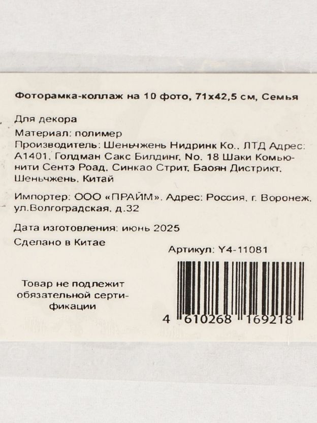 Фоторамка-коллаж на 10 фото — это не просто аксессуар, а способ создать персональную фотогалерею прямо у себя дома. Благодаря универсальному белому цвету и стильной надписи «Семья», рамка подходит для классических и современных интерьеров. Часто спрашивают: «Как выбрать фоторамку для большого количества фото?» — этот вариант оптимален для семейных снимков, детских портретов, памятных событий.