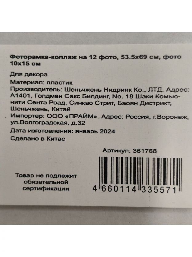 Фоторамка-коллаж на 12 фото, 53.5х69 см, фото 10х15 см, пластик, Y4-3881