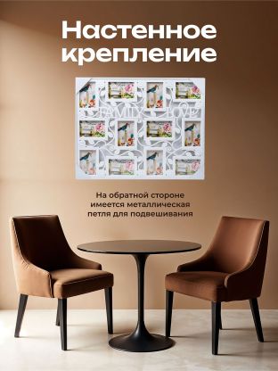 Калейдоскоп изображений с запечатленными на них счастливыми моментами жизни, восхитительными пейзажами и родными лицами станет прекрасным украшением интерьера. Отдельные рамки соединены между собой причудливо изогнутыми ветками с листочками, напоминающими генеалогическое древо, поэтому особенно хорошо модель подходит для размещения семейных снимков. Изделие выполнено из высококачественного пластика: и цветные, и черно-белые фотографии отлично смотрятся на свежем белом фоне.