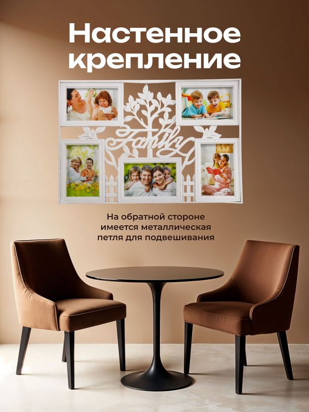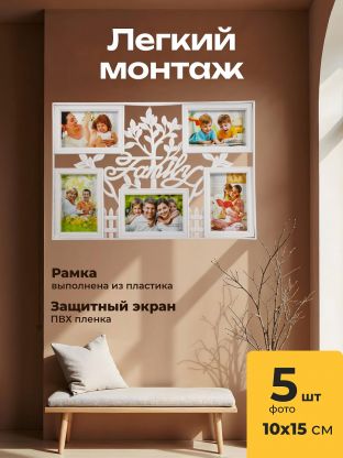 Фоторамка-коллаж на 5 фото, 49.5х33.5 см, фото 10х15 см, полимер, белая, Y4-6856