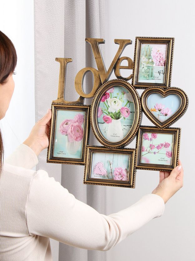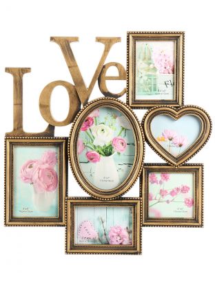 Фоторамка-коллаж на 6 фото, 40х42 см, пластик, бронза, Любовь, Y4-11079