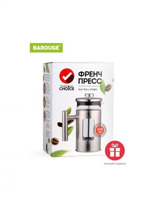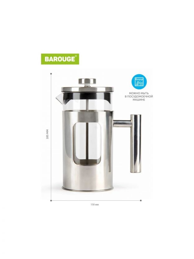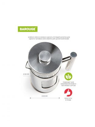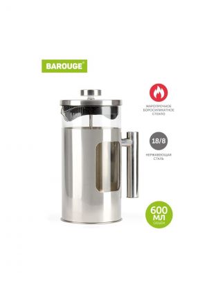 Френч-пресс 0.6 л, стекло, Barouge, Traditional choice, серебро, BF-704
