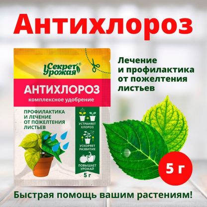 Фунгицид Антихлороз, 5 г – идеальное решение для борьбы с хлорозом растений. Легко справляется с проблемой благодаря эффективному опрыскиванию. Продукт универсален и подходит для различных видов растений. Произведен в России, что гарантирует высокое качество и надежность.
