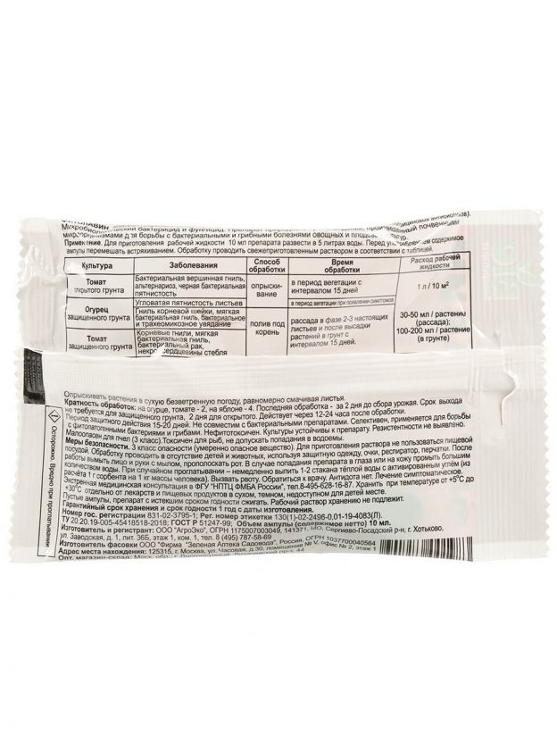 Фунгицид Фитолавин, от грибков и бактериальных болезней, 10 мл, ампула, Зеленая аптека Садовода