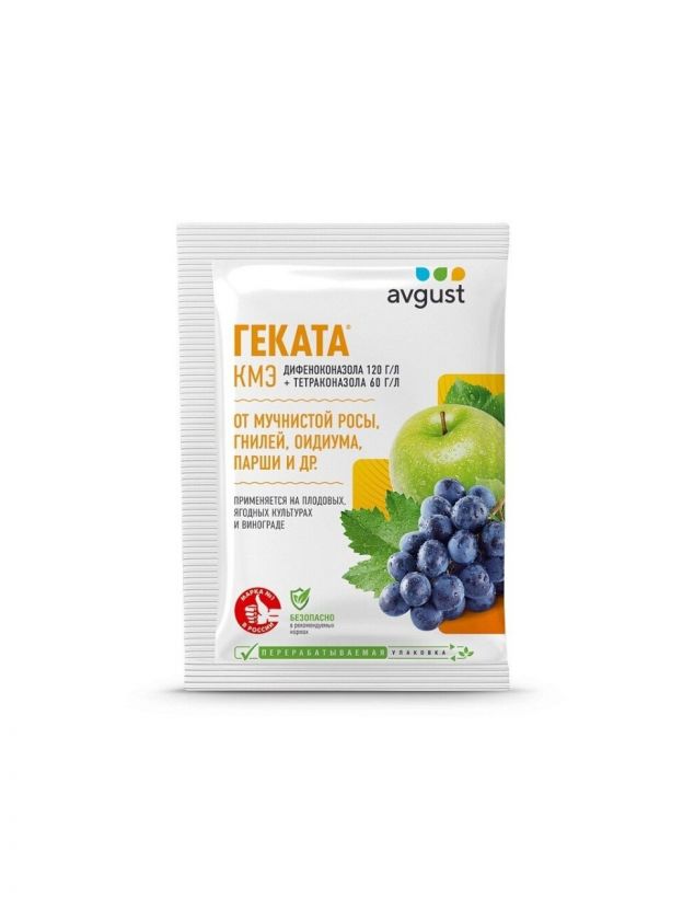 Геката - комбинированный препарат от комплекса болезней на плодовых, ягодных культурах и винограде. Инфекции сада, гнили портят плоды, сокращают срок хранения, снижают урожайность и могут даже привести к гибели растения. Зараженные яблоки и груши выделяют токсины, вредные для человека. Геката содержит уникальное сочетание действующих веществ, что позволяет эффективно лечить и защищать от болезней, не вызывая привыкания у возбудителей инфекции.