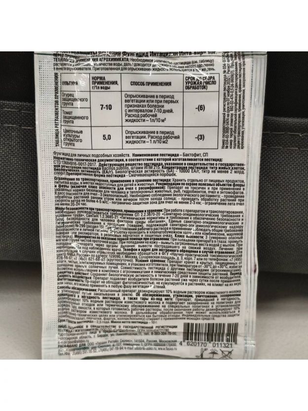 Фунгицид Интацилин, 10 г, Инта Вир – надежное решение для защиты растений от грибковых заболеваний. Этот продукт помогает сохранить здоровье и красоту ваших растений, обеспечивая эффективную защиту от вредоносных грибков. Благодаря своей формуле, фунгицид быстро и эффективно действует, защищая растения на длительный срок.